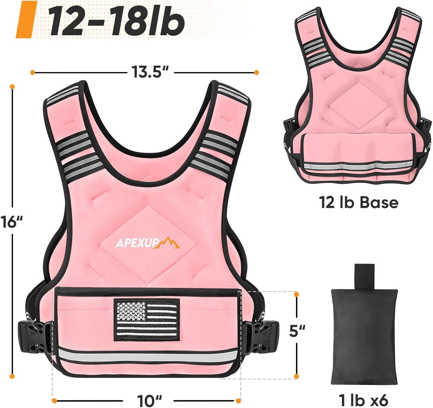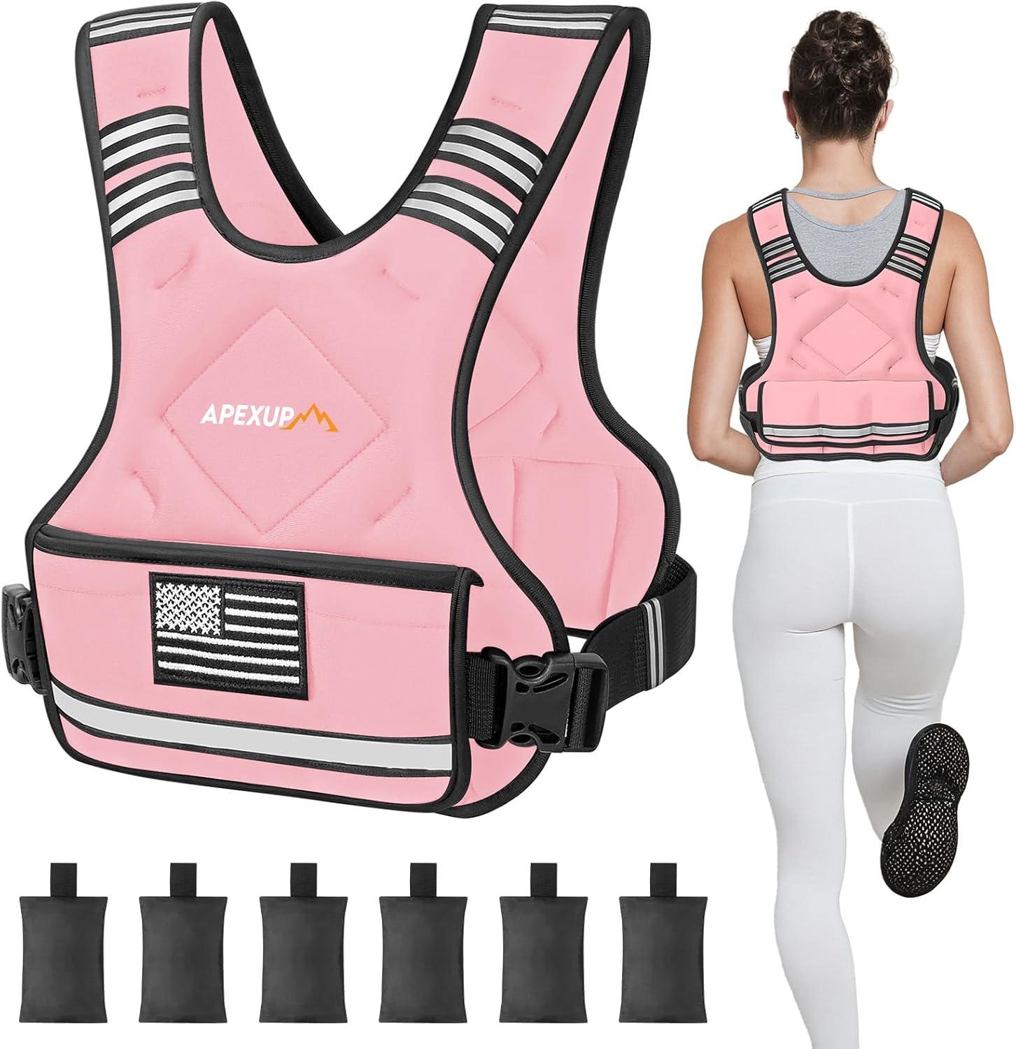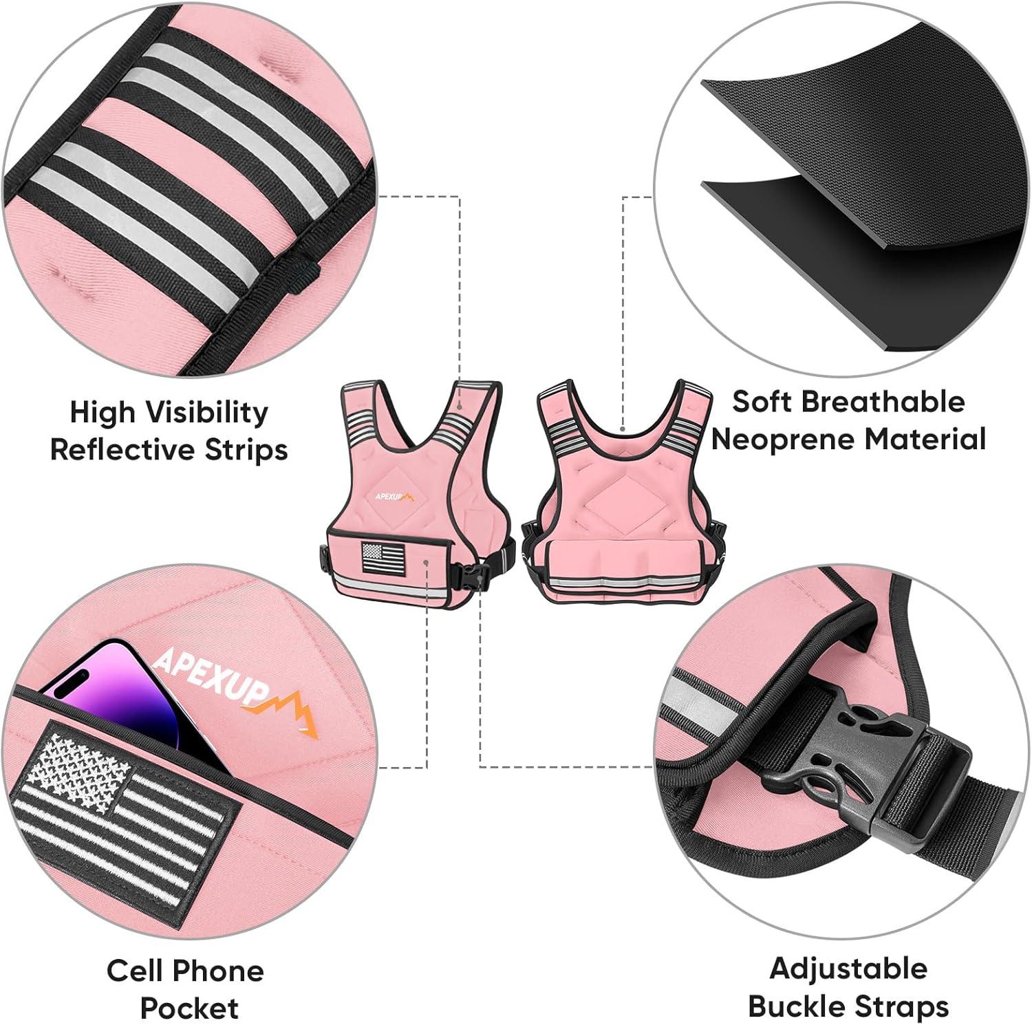 APEXUP Adjustable Weighted Vest, 4-10lb/12-18lb/20-32lb Vest with 6 Ironsand Weights and Large Pocket, Weight Vest for Men Women Strength Training, Running, Walking(Pink)